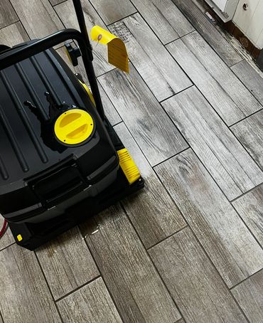 Using our high power floor scrubber to remove stuck on grime, dirt, and wax buildup. Restore high traffic areas.
